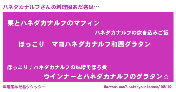 | 意味不明あだ名 | 『住所不定無職ハネダカナルフ(14歳)』 |