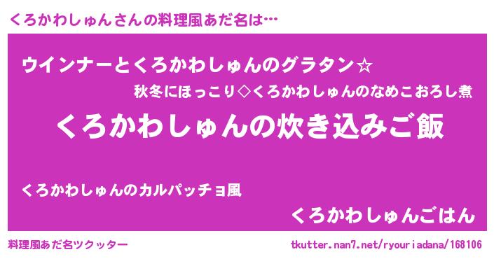 | 男性向けラノベタイトル風あだ名 | 『うちのくろかわしゅんが世界を掌握している!』 |