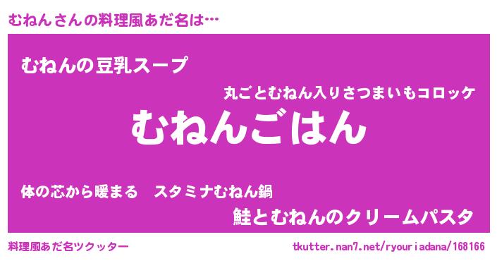 | ヘコむあだ名 | 『むねっちょ』『つくし』『むねもー』 |