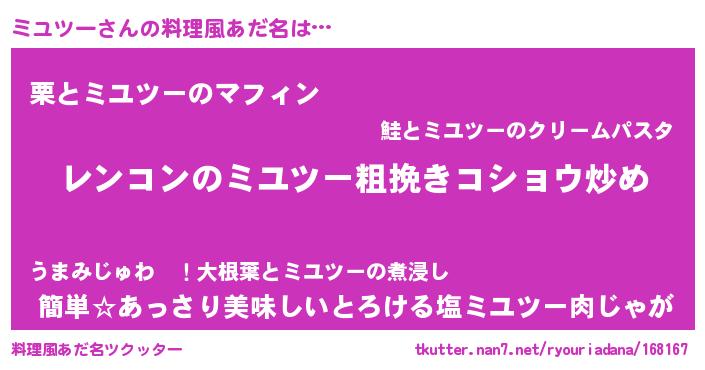 | 意味不明あだ名 | 『自称ミユツー』『永久保存ミユツー』 |