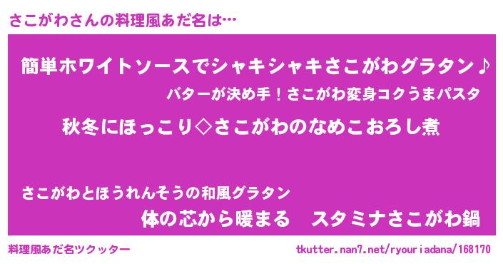 | 意味不明あだ名 | 『とにかく怪しいさこがわ』 |