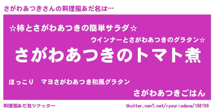| 男性向けラノベタイトル風あだ名 | 『おまえをオタクにしてやるから、俺をさがわあつきにしてくれ! 』 |