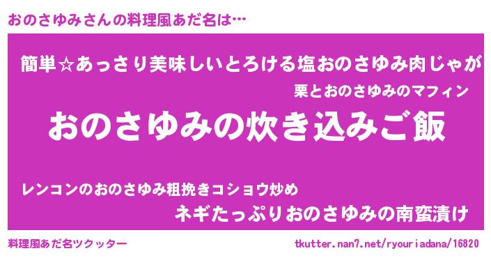 | 男性向けラノベタイトル風あだ名 | 『うちのおのさゆみが世界を掌握している!』 |