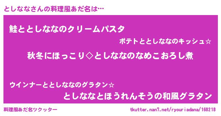 | 欧米人風あだ名 | 『アンジェラ・としなな』 |
