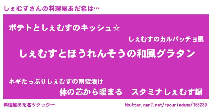 | 胡散臭い通販商品みたいなあだ名 | 『全米が絶賛したサプリメント…その名も「しぇむす」』 |
