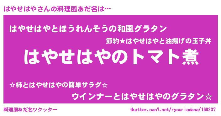 | ヒーロー風カッコイイあだ名 | 『友情の使者はやせはや』『仮面ハヤダー』 |