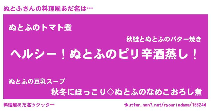 | 女子向けラノベタイトル風あだ名 | 『闇のぬとふ』『ぬとふ夫妻のなれそめ』 |