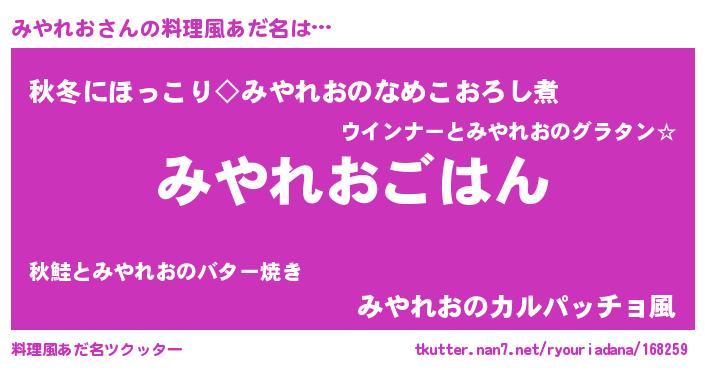 | ヒーロー風カッコイイあだ名 | 『仮面ミヤダー』『ウルトラみやれおマン』 |