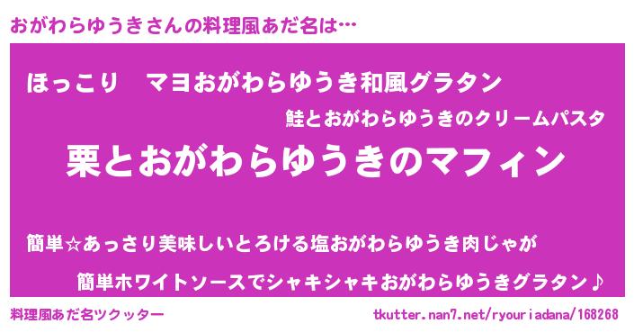| 意味不明あだ名 | 『住所不定無職おがわらゆうき(91歳)』 |