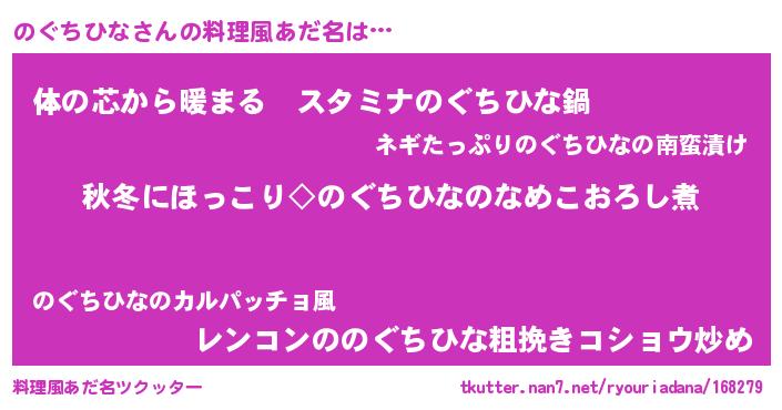 | ヘコむあだ名 | 『酢こんぶ』『のぐっふぃ~』 |