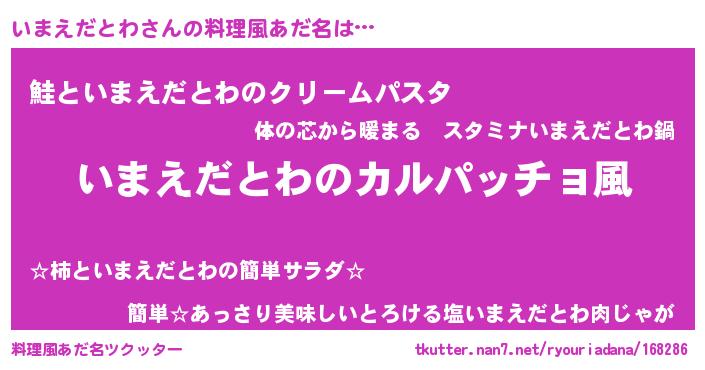 | 意味不明あだ名 | 『住所不定無職いまえだとわ(85歳)』 |