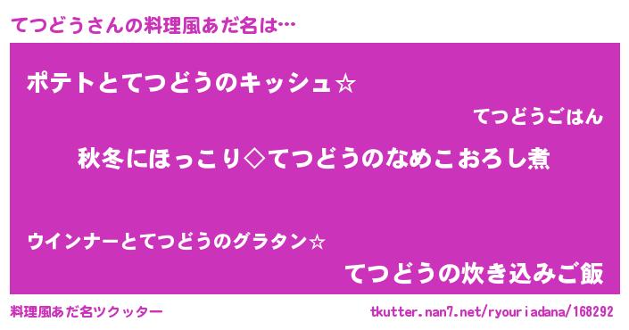 | ヘコむあだ名 | 『てつ太郎』『なまこ酢』 |