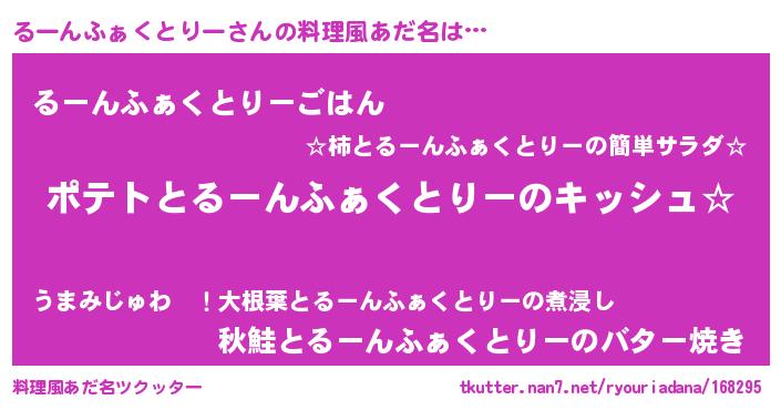 | 女子向けラノベタイトル風あだ名 | 『るーんふぁくとりーの卵を拾いまして』 |