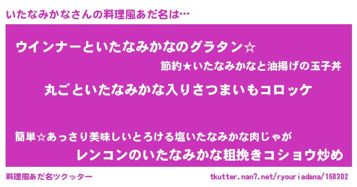 | 意味不明あだ名 | 『住所不定無職いたなみかな(93歳)』 |