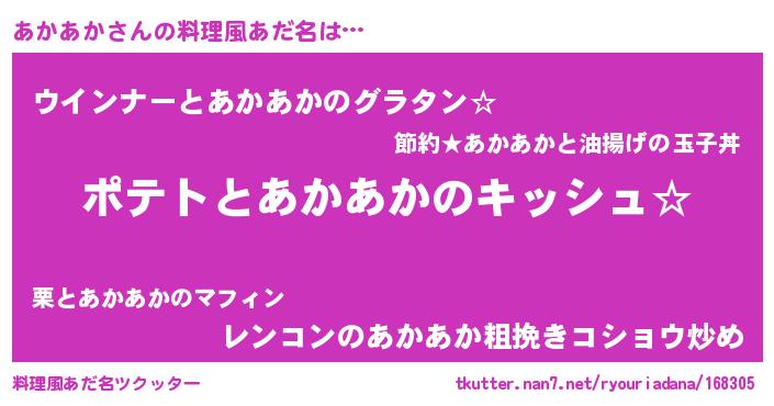 | ヒーロー風カッコイイあだ名 | 『幻影騎士アカ』『ウルトラあかあかマン』 |
