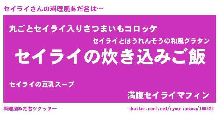 | 意味不明あだ名 | 『住所不定無職セイライ(71歳)』 |