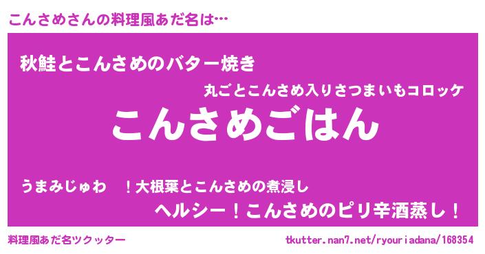 | 意味不明あだ名 | 『エリンギ科こんさめ属』『自称こんさめ』 |
