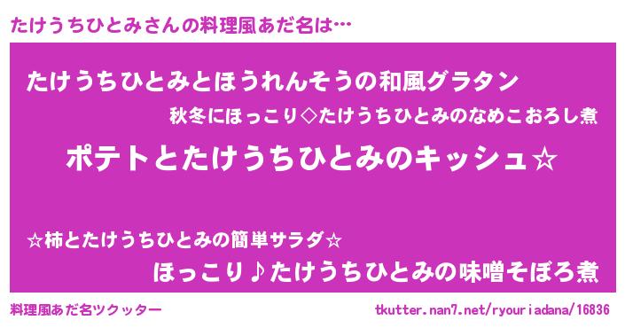| 男性向けラノベタイトル風あだ名 | 『たけうちひとみの嫁は女の子じゃないと思った?』 |