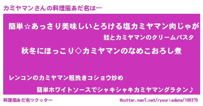 | ヘコむあだ名 | 『カミヤマン(小並感)』『カミぷりん』 |