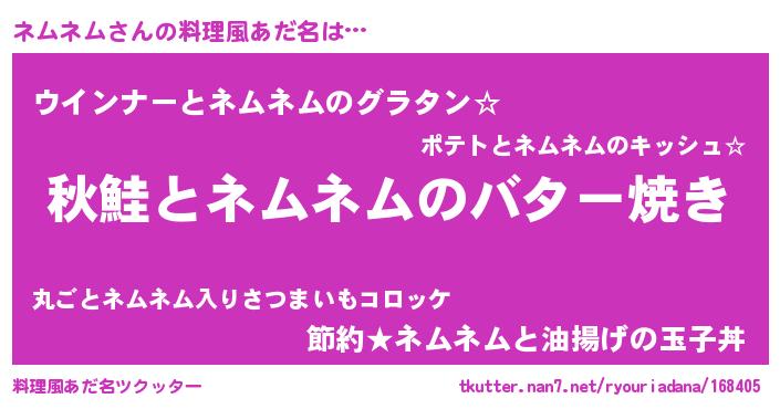 | 胡散臭い通販商品みたいなあだ名 | 『来世でも幸せになれる健康食品…その名も「ネムネム」』 |