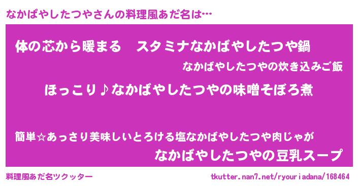 | 男性向けラノベタイトル風あだ名 | 『なかばやしたつやの憂鬱』 |