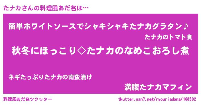 | 意味不明あだ名 | 『とにかく怪しいたナカ』 |