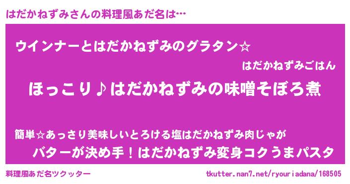 | ヘコむあだ名 | 『はだふぇ~』『なまこ酢』『はだを』 |