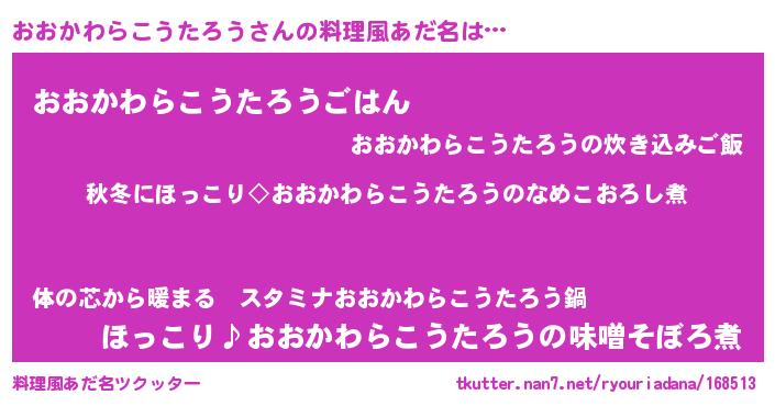 | 男性向けラノベタイトル風あだ名 | 『おおかわらこうたろうに滅ぼされるだけの簡単なお仕事です』 |