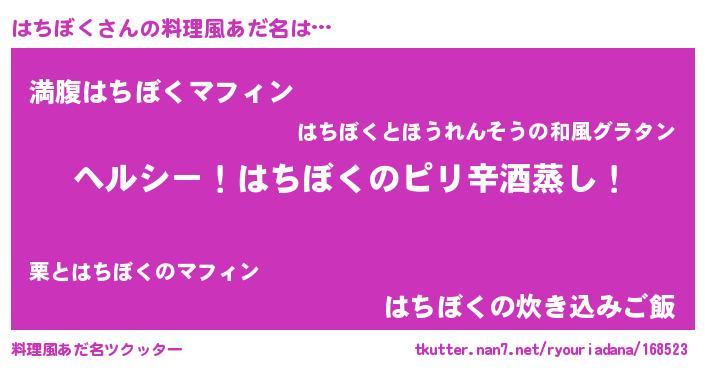 | 男性向けラノベタイトル風あだ名 | 『Re:はちぼくから始める異世界生活』 |
