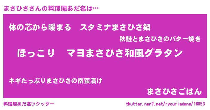 | ヒーロー風カッコイイあだ名 | 『仮面マサダー』『ウルトラまさひさマン』 |