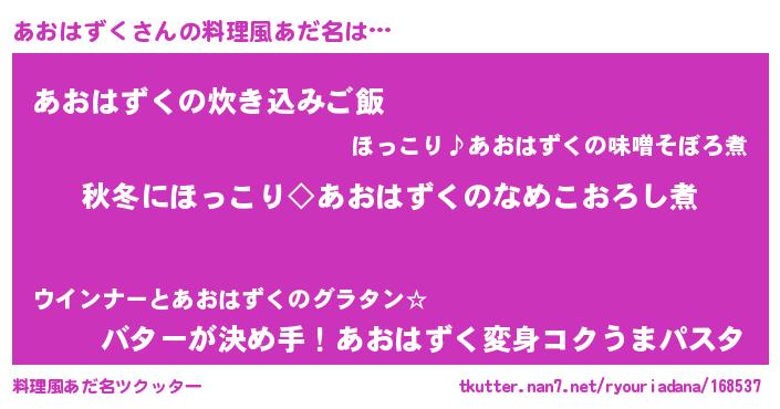 | 男性向けラノベタイトル風あだ名 | 『あおはずくに滅ぼされるだけの簡単なお仕事です』 |