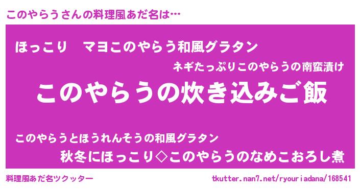 | 意味不明あだ名 | 『住所不定無職このやらう(7歳)』 |