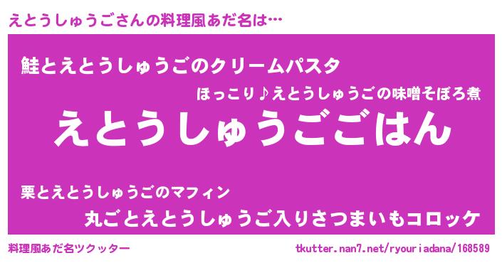| 男性向けラノベタイトル風あだ名 | 『転生したらえとうしゅうごだった件』 |