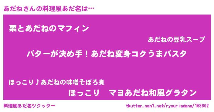 | ヘコむあだ名 | 『あだ太郎』『あだにー』『なまこ酢』 |