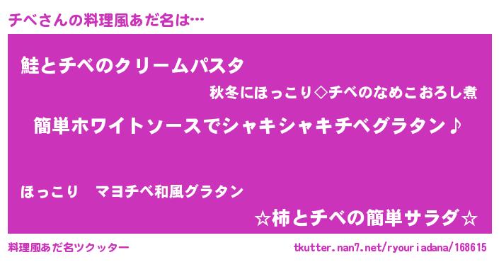 | ヘコむあだ名 | 『チベを』『チベ(苦笑)』『酢こんぶ』 |