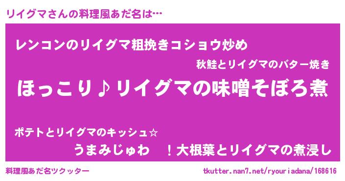 | 意味不明あだ名 | 『ペロリンリイグマ』『自称リイグマ』 |