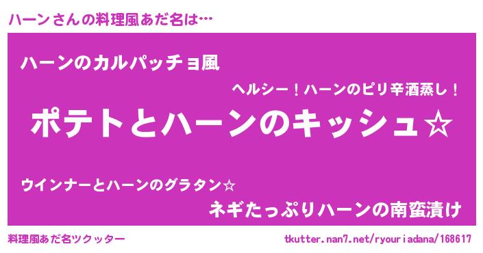 | ヘコむあだ名 | 『ハーっ子』『ハーもー』『レバニラ』 |