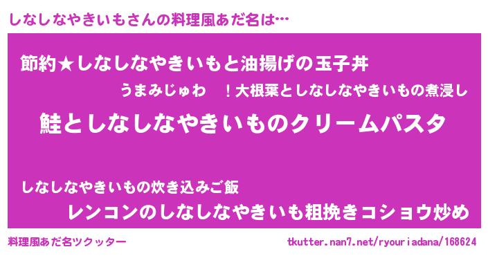 | ヒーロー風カッコイイあだ名 | 『天空の使者しなしなやきいも』 |
