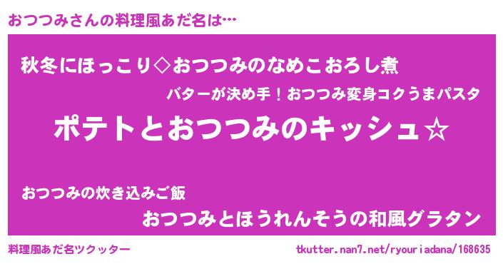 | 意味不明あだ名 | 『とにかく怪しいおつつみ』 |