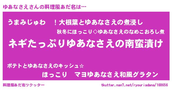 | 恥ずかしいあだ名 | 『プリティーゆあなさえ』『ゆあっちょ』 |