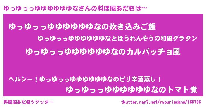 | 女子向けラノベタイトル風あだ名 | 『ゆっゆっっゆゆゆゆゆゆなが死なない童話 林檎のゆっゆっっゆゆゆゆゆゆなの診療簿』 |