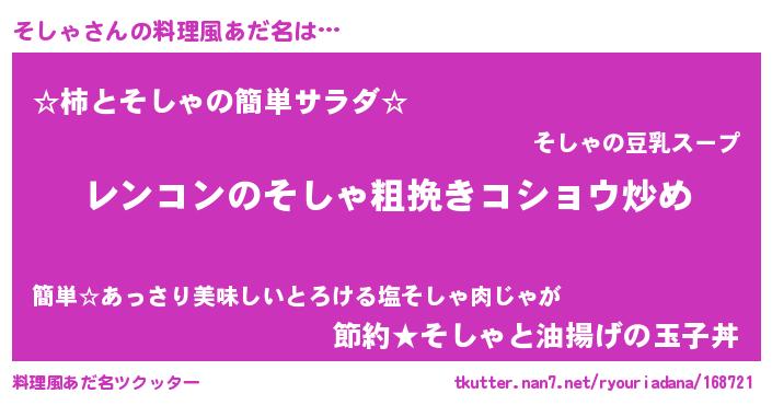 | 女子向けラノベタイトル風あだ名 | 『そしゃなんてお断りですっ。』 |