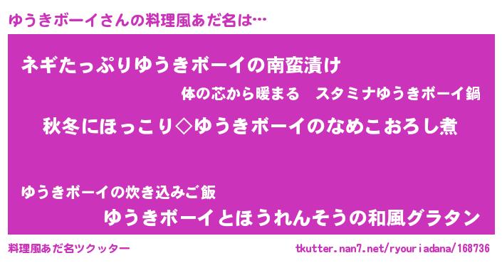 | ヘコむあだ名 | 『ゆうもー』『酢こんぶ』『ゆうを』 |