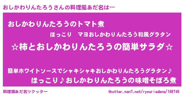 | 女子向けラノベタイトル風あだ名 | 『シンデレラおしかわりんたろう家の靴箱館』 |