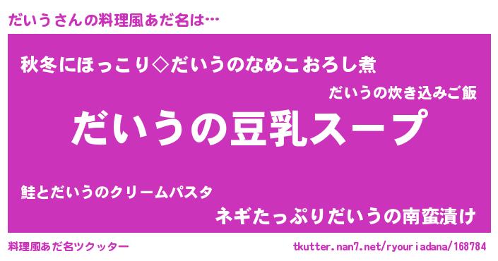 | 欧米人風あだ名 | 『ウサインだいう』『アンジェラ・だいう』 |