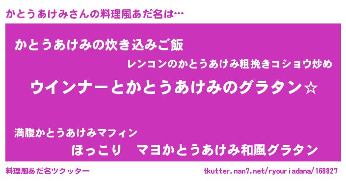 | 肩書あだ名 | 『かとうあけみ国家主席』 |