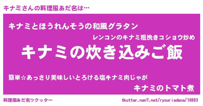 | 意味不明あだ名 | 『なめこ科キナミ属』『自称キナミ』 |