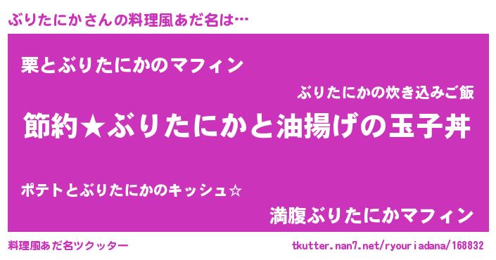 | 意味不明あだ名 | 『ペロリンぶりたにか』『自称ぶりたにか』 |