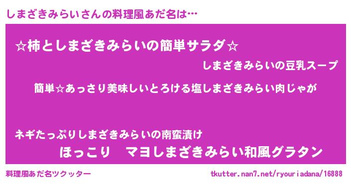 | 意味不明あだ名 | 『永久保存しまざきみらい』 |