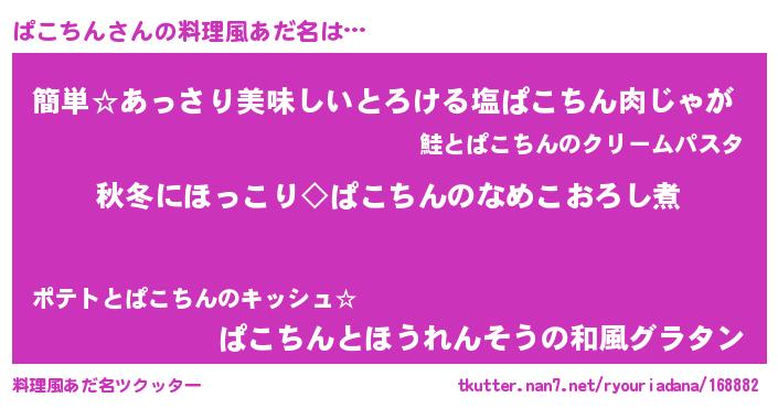 | ヒーロー風カッコイイあだ名 | 『ネオパコチン』『慈愛の使者ぱこちん』 |